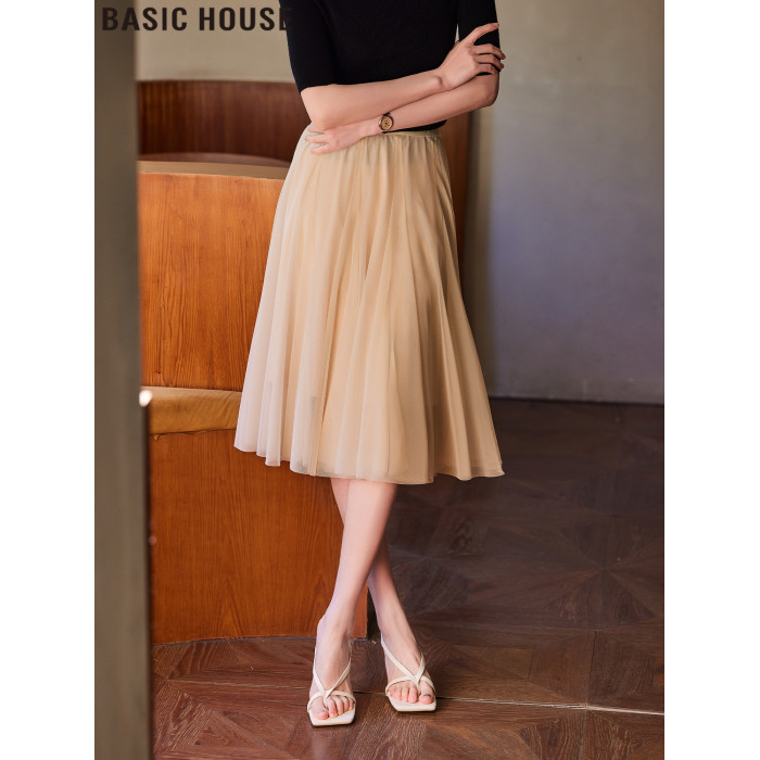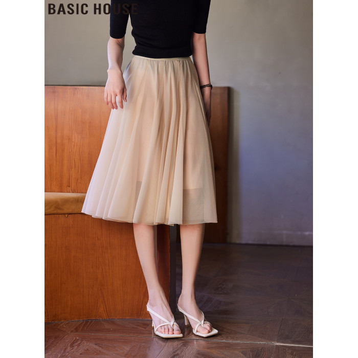 Basic House/百家好月光舒曼灰色高腰a字半身裙女2025年夏季新款