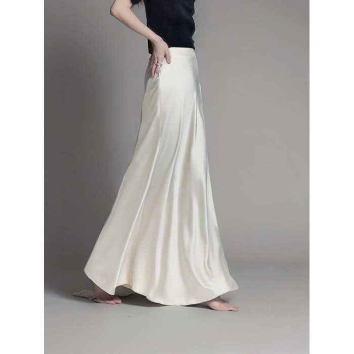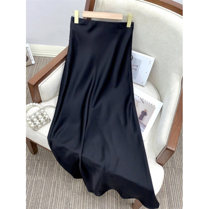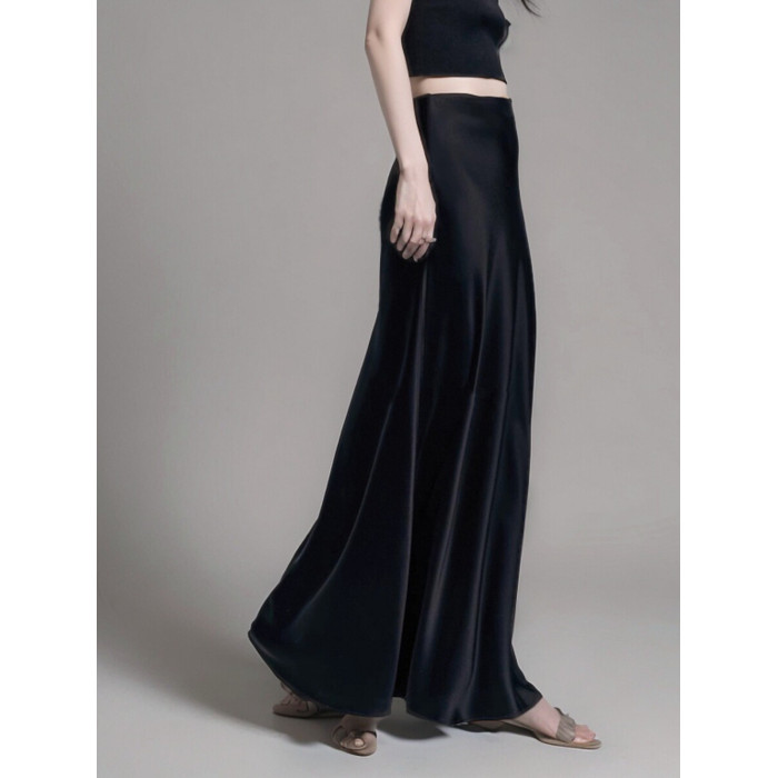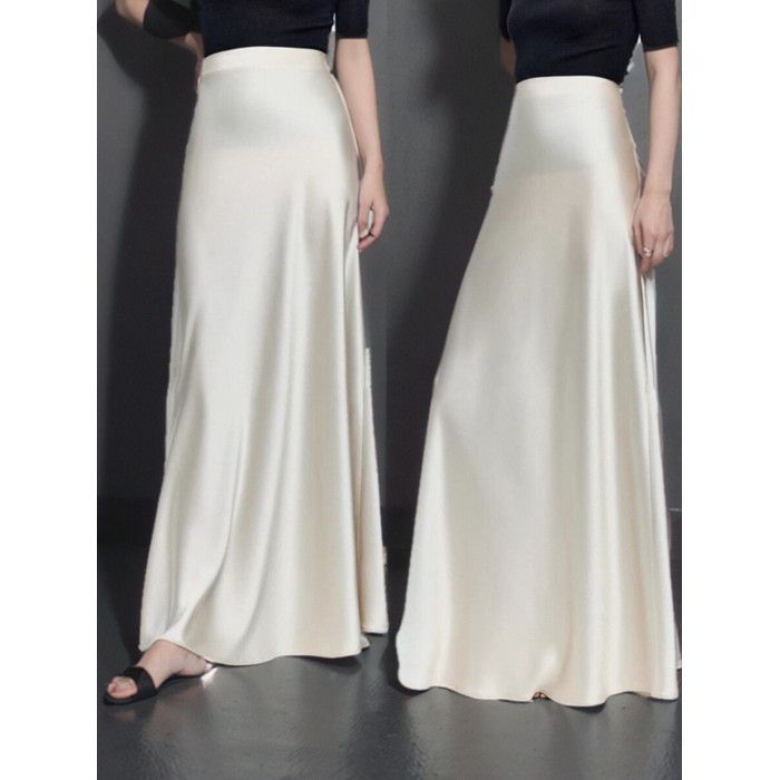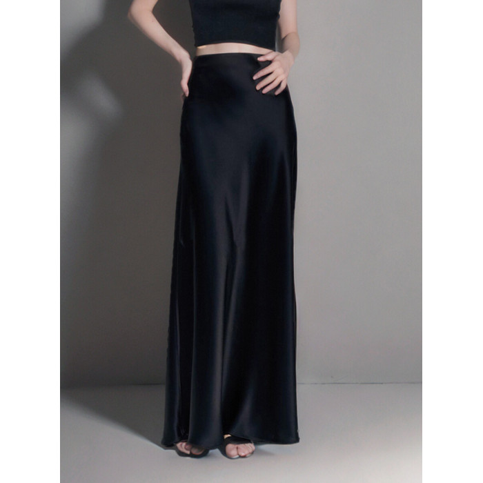重磅進口三醋酸緞面涼感鎏光垂感半裙高腰斜裁加長拖地顯瘦半身裙