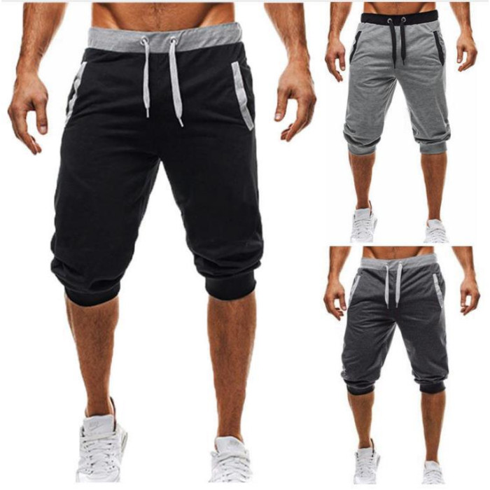 新款歐美休閒運動修身健身五分男士慢跑褲