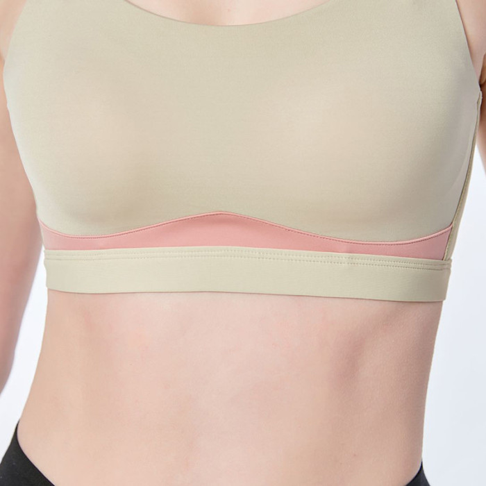 裸感瑜伽運動胸墊內衣無鋼圈固定型杯聚攏健身防震跑步文胸全罩杯