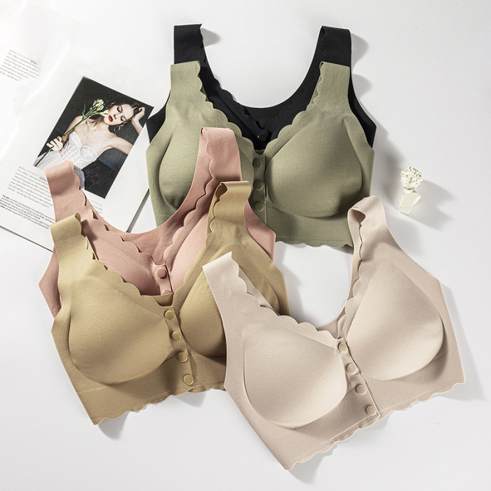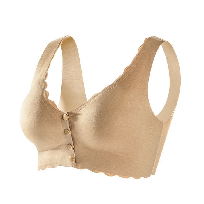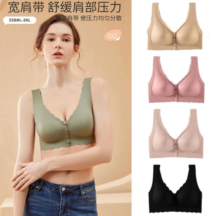 中老年款前釦無痕加肥加大內衣超薄無鋼圈固定杯高彈光面背心文胸
