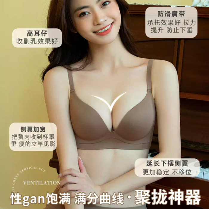 高質量內衣女小胸聚攏無痕顯大加厚一片收副乳防下垂文胸平胸專用