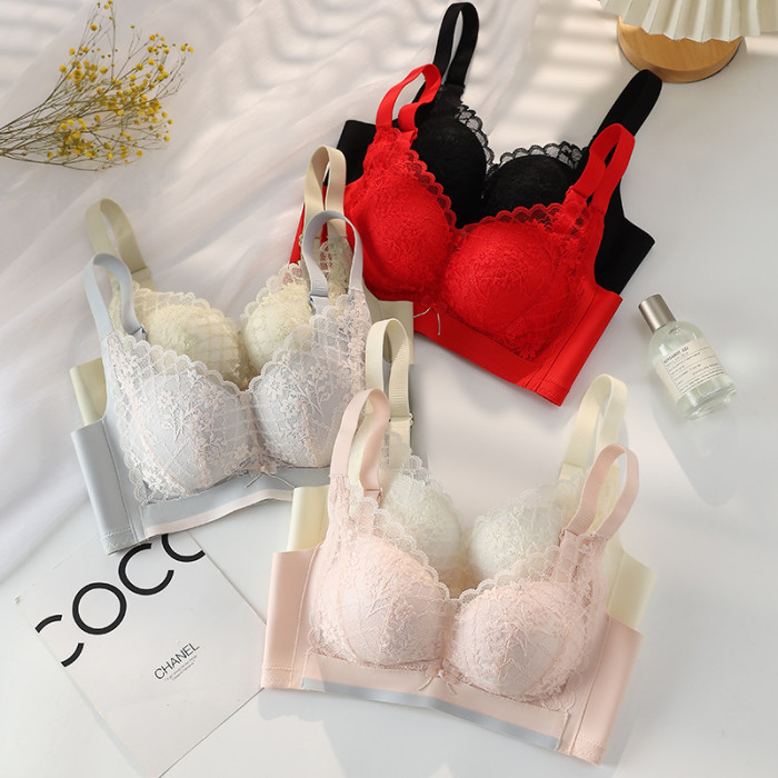 無側骨調整型內衣小胸聚攏防下垂性感蕾絲文胸女無鋼圈舒適收副乳