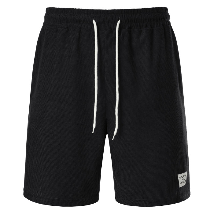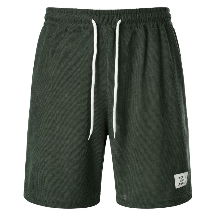 夏季新款純色系帶運動褲燈芯絨簡約五分短褲男士短褲休閒褲