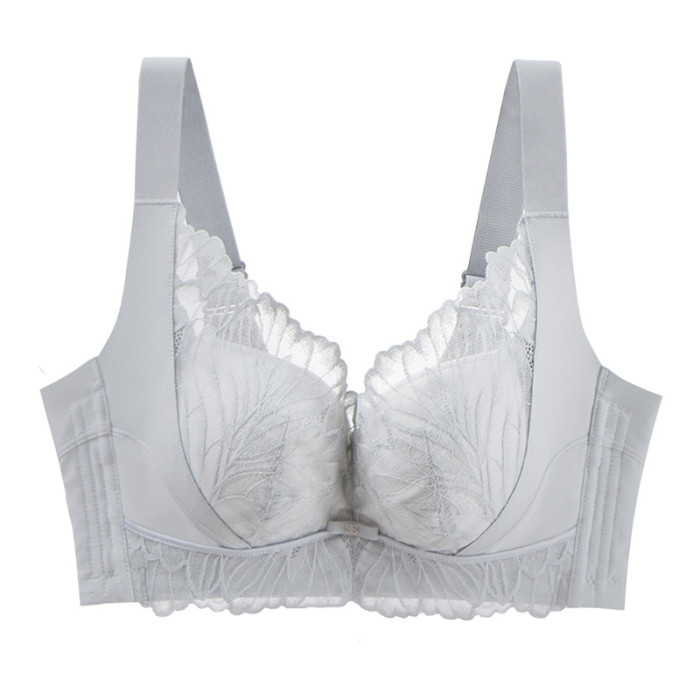 內衣女薄款蕾絲大胸顯小中薄杯無鋼圈聚攏調整型透氣文胸收副乳罩