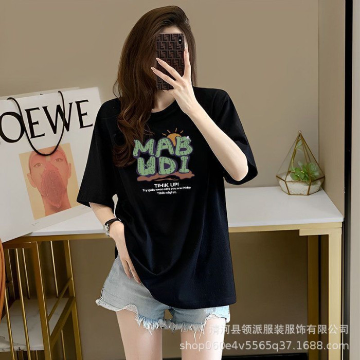 ins超火白色短袖t恤女重磅純棉美式正肩oversize潮牌寬松半袖上衣