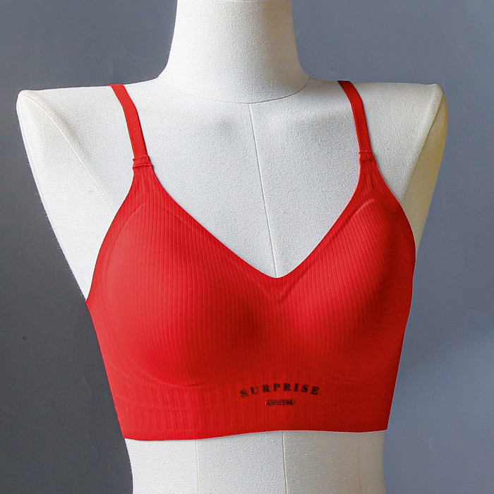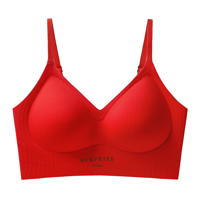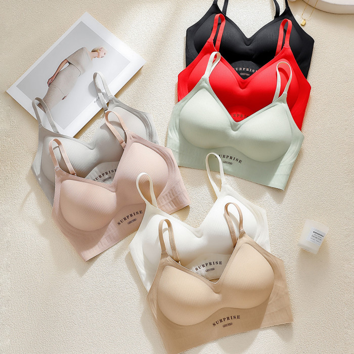 小肩帶美背果凍條軟支撐內衣女小胸聚攏無痕薄款透氣無鋼圈文胸罩