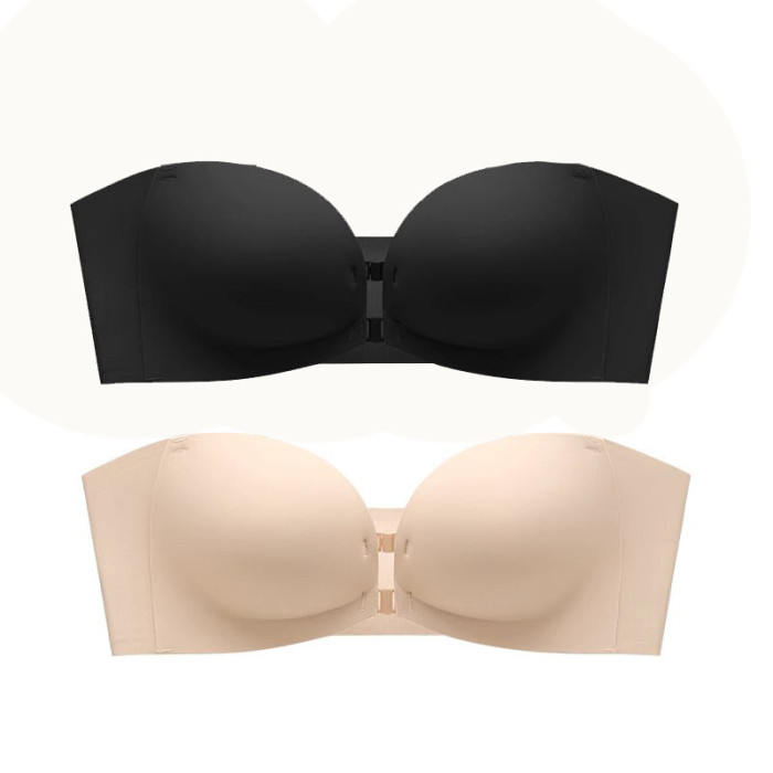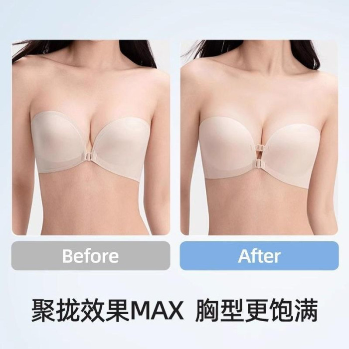 原版無痕雙前釦無肩帶內衣女隱形防滑抹胸美背小胸聚攏顯大文胸罩