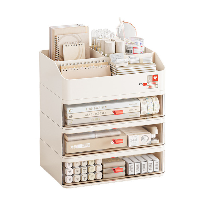 友耐透明抽屜式桌面文件置物架辦公室多功能可曡加防塵襍物收納盒