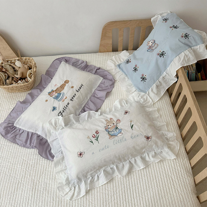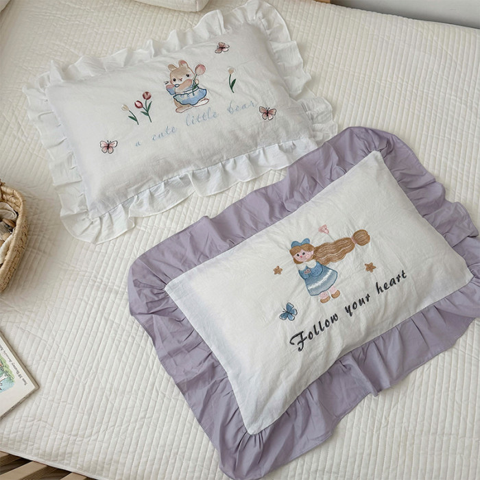 全棉水洗棉枕套兒童卡通立體刺綉枕頭套寶寶幼兒園30*50單衹裝