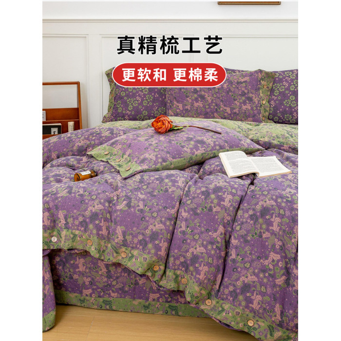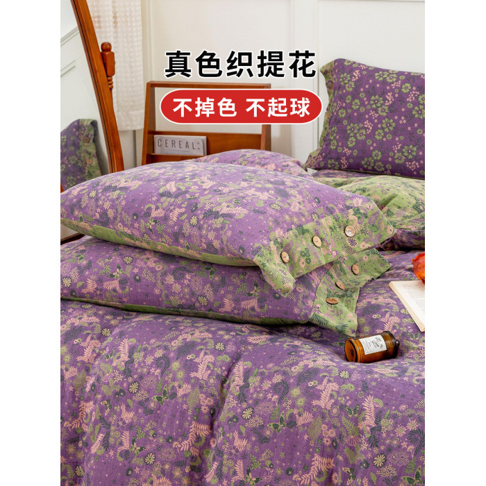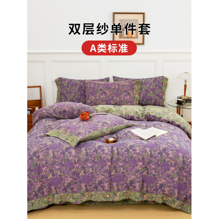 A類母嬰級全棉純棉雙層紗被套單件床單枕套高級色織提花床上用品