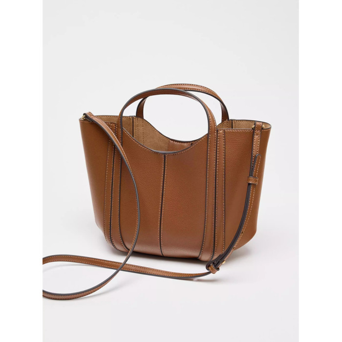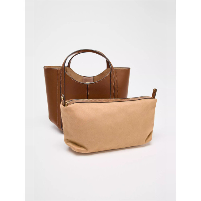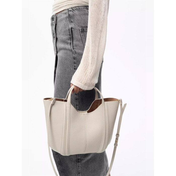 城市休閒包,飾有撞色緝線。設有提手和可拆斜背背帶。可拆內袋以拉鍊閉合。