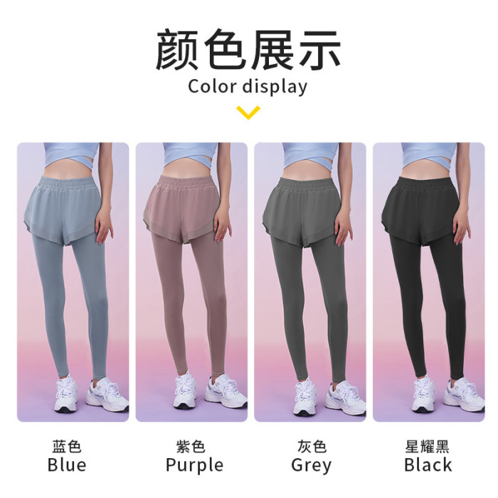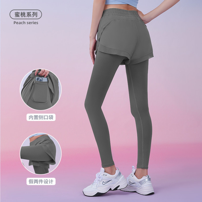 聚衣堂假兩件運動緊身褲口袋褲裸感健身長褲高腰提臀瑜伽褲女