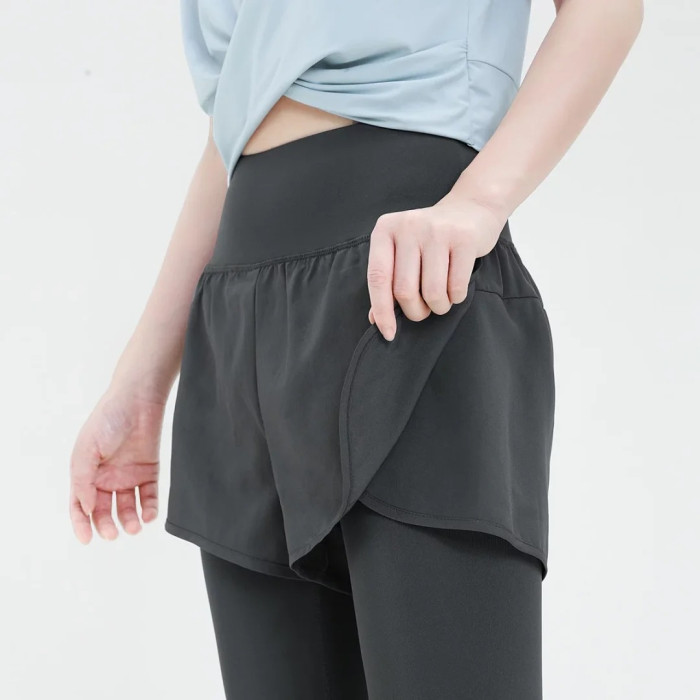 lulu防走光假兩件瑜伽褲女夏季新款高腰健身長褲彈力跑步運動褲女