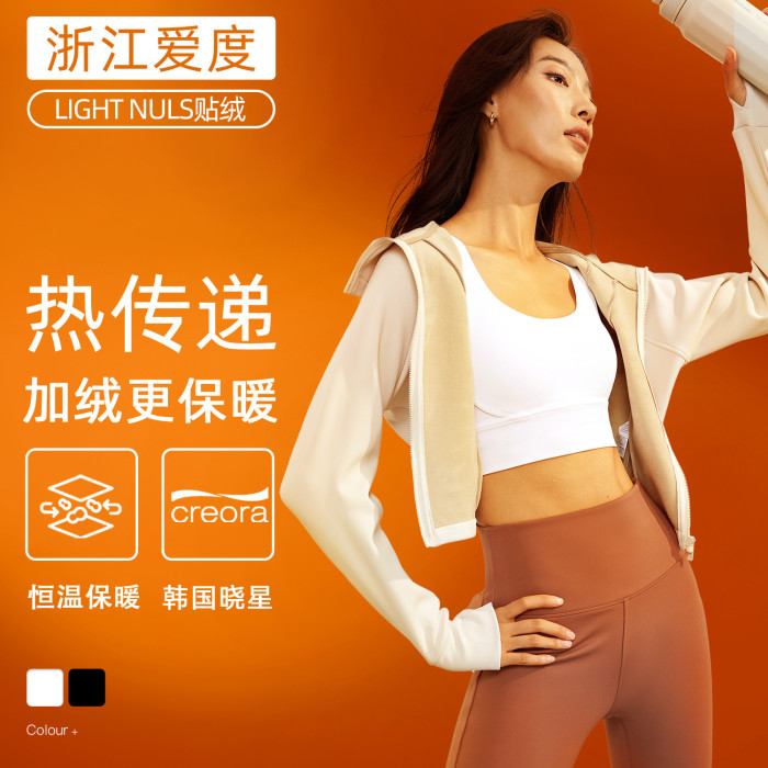 愛度貼絨秋冬連帽立領瑜伽運動外套短款修身長袖上衣女運動瑜伽服