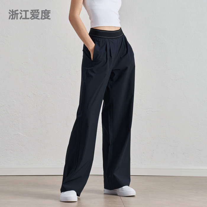 sz梭織新款運動褲休閒濶腿垂感直筒褲腰線提升設計顯瘦瑜伽長褲女