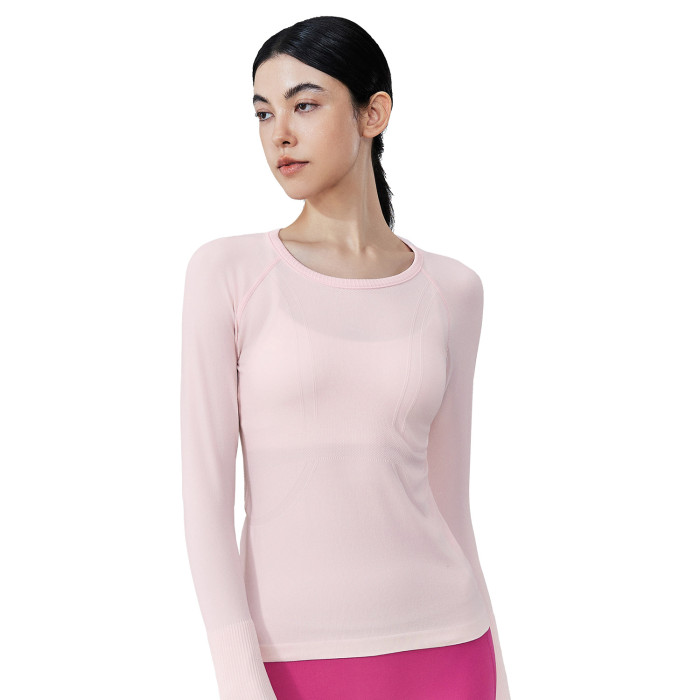 嚴選無縫瑜伽服長袖遮肚子圓領修身高級感跑步健身運動上衣女健身