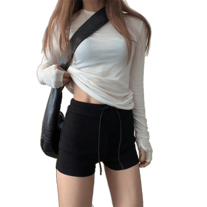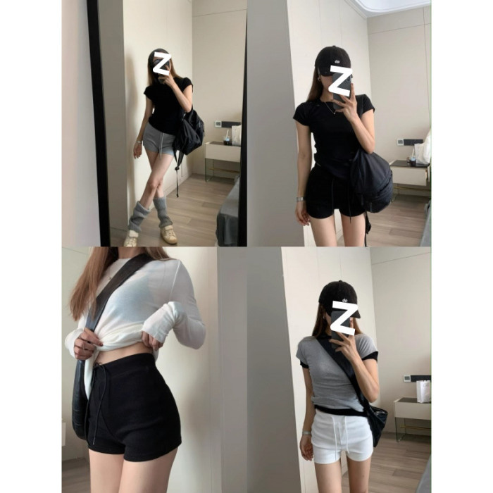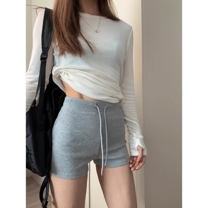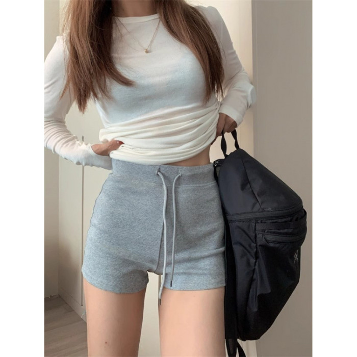 灰色運動短褲女2025新款顯瘦抽繩騎行健身包臀緊身休閒辣妹瑜伽褲