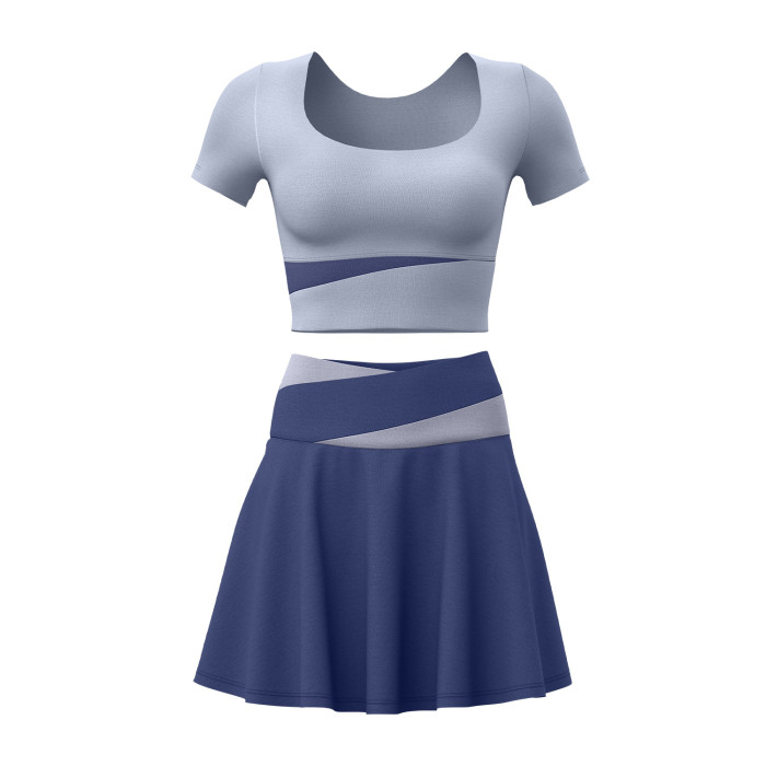 聚衣堂夏季拼色假兩件瑜伽兩件套防走光高腰運動健身套裝女