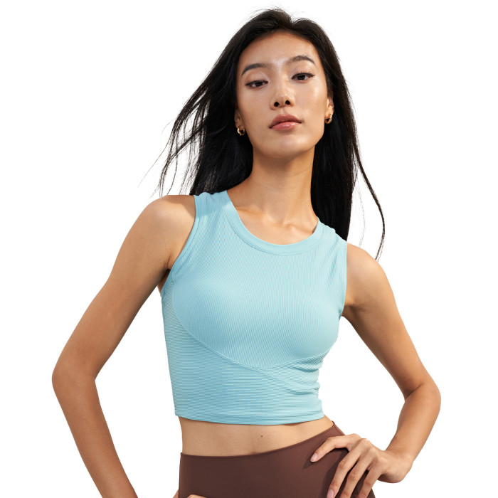 嚴選帶胸墊收腰瑜伽服羅紋固定杯文胸運動背心裸感無袖上衣健身服