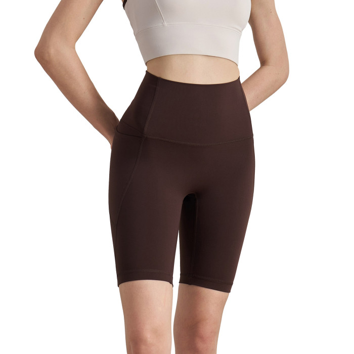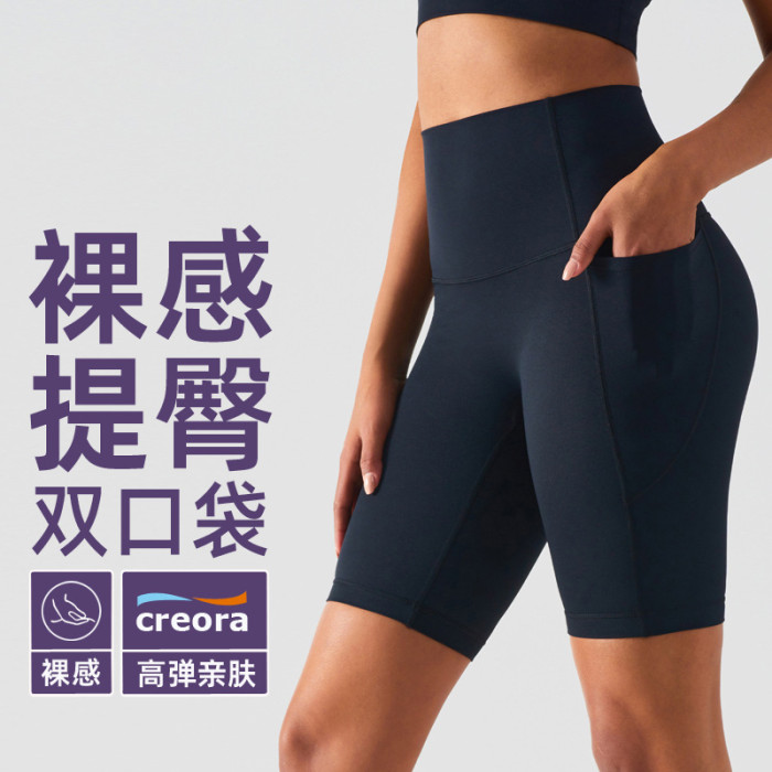 嚴選裸感戶外無尲尬線口袋瑜伽褲女高腰五分緊身提臀騎行運動短褲