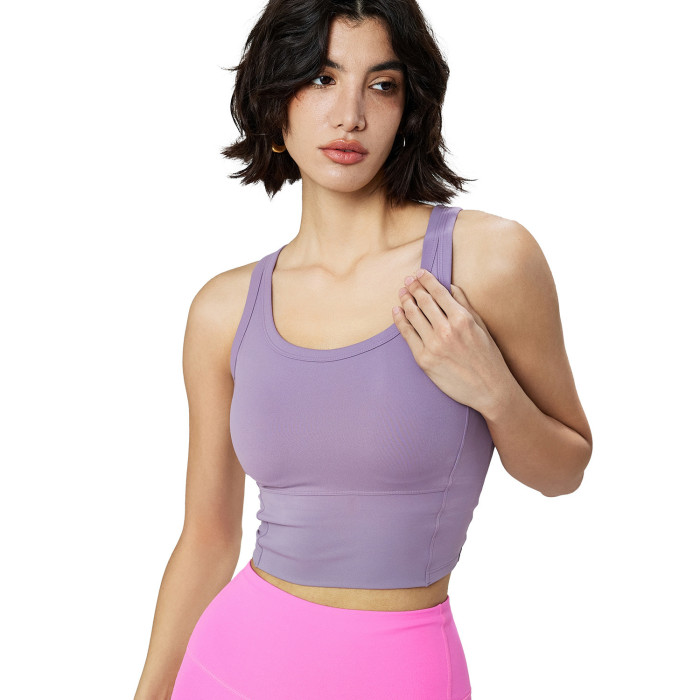 嚴選裸感無袖瑜伽背心固定杯運動內衣女跑步聚攏休閒健身文胸外穿