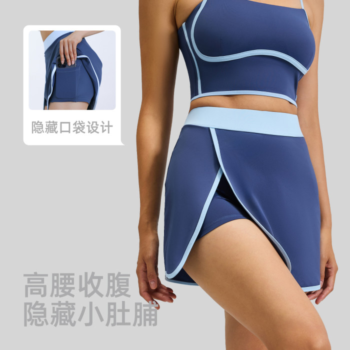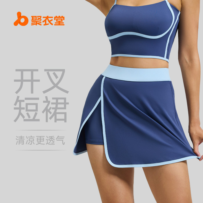 聚衣堂線形瑜伽短裙假兩件防走光內置口袋健身運動裙