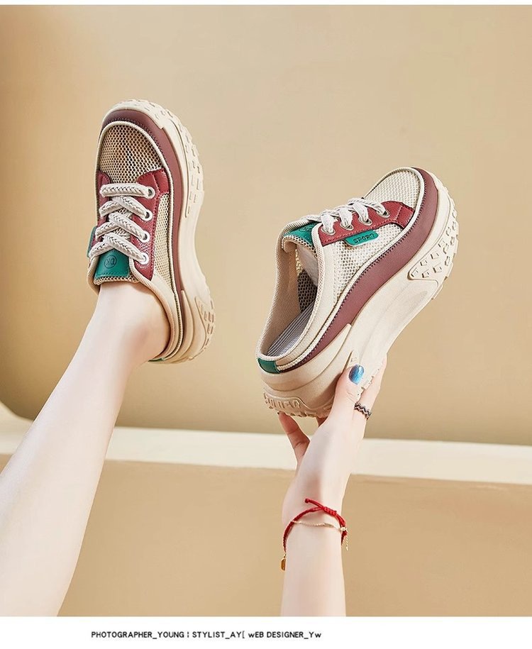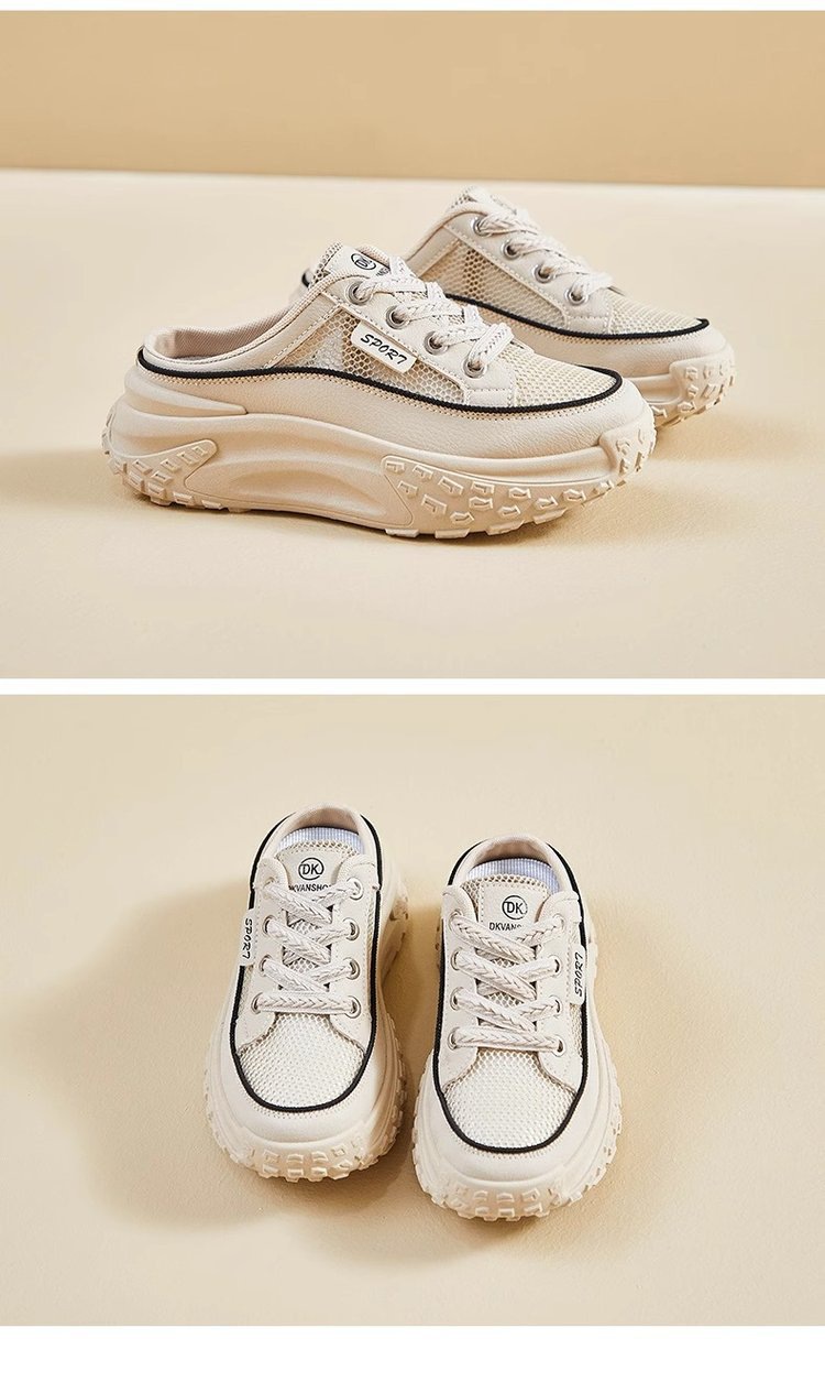爆款透氣包頭厚底拖鞋女2025夏季時尚百搭外穿包頭網面沙灘半拖鞋