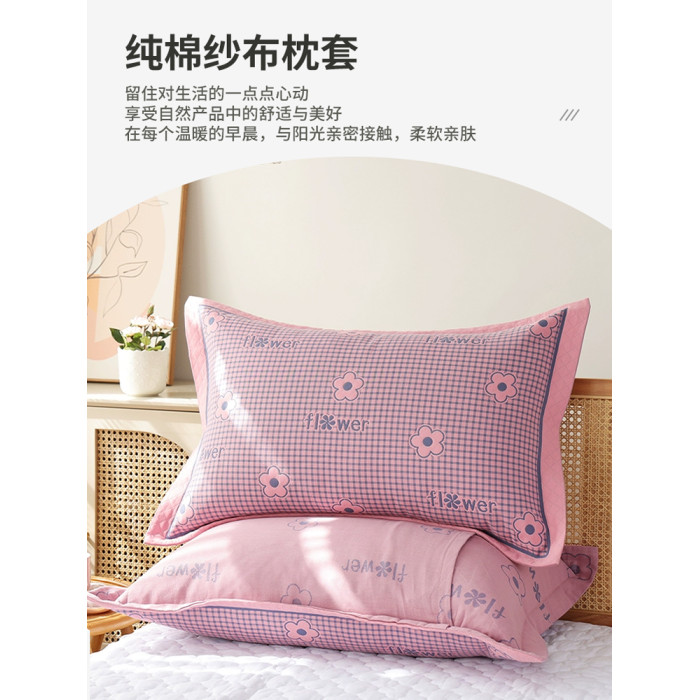 純棉紗布枕套一對裝高級高密吸汗透氣成人家用全棉加厚枕芯枕頭套