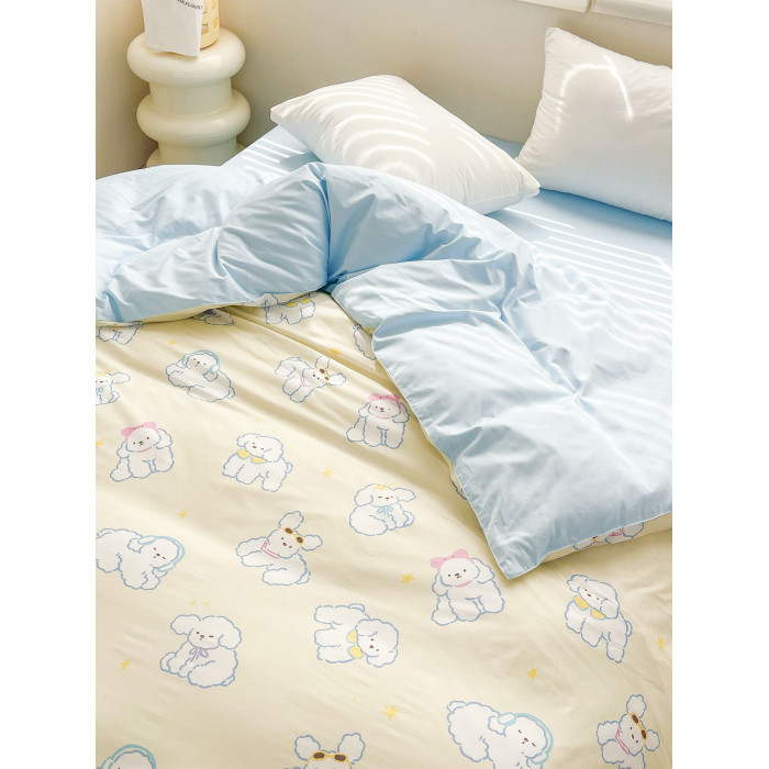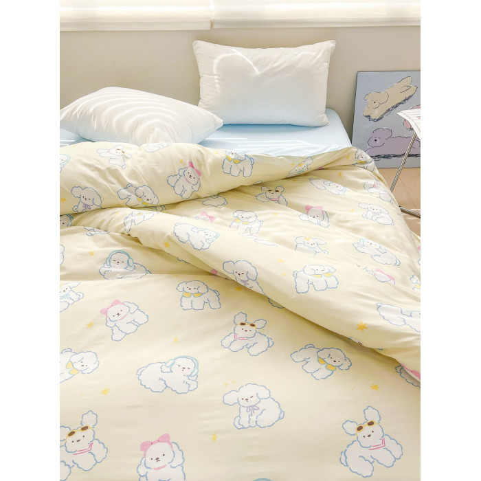 黃油比熊 新疆棉全棉被套舒服被罩純棉單雙人 原創可愛小狗奶油風