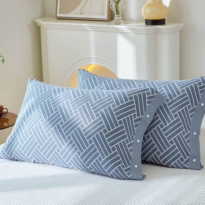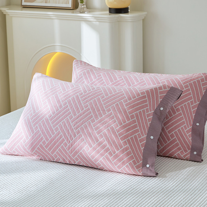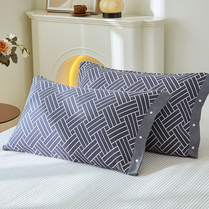 高檔純棉枕套一對裝新款全棉紗布成人家用按釦式48*74全包枕頭套