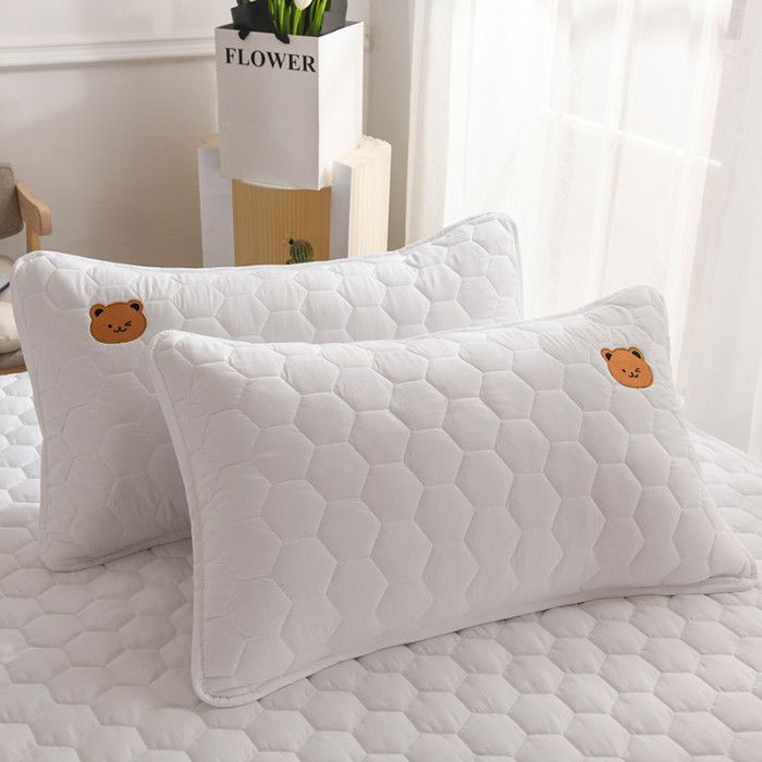 可愛熊枕套1對--白色 不含枕芯