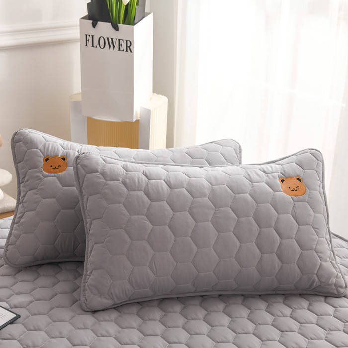 可愛熊枕套1對--灰色 不含枕芯