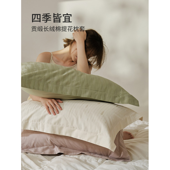 高級100支提花長絨棉枕套一對裝全棉乳膠枕頭套48x74家用枕芯套新