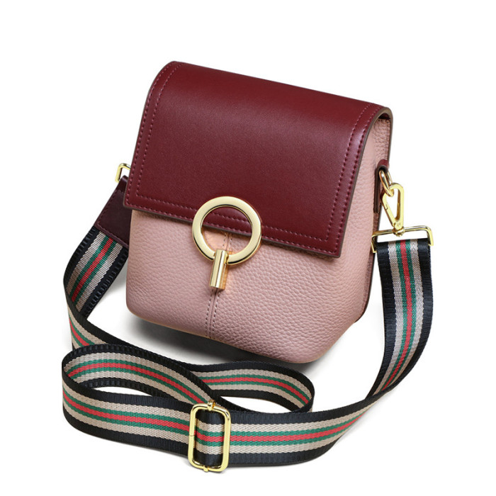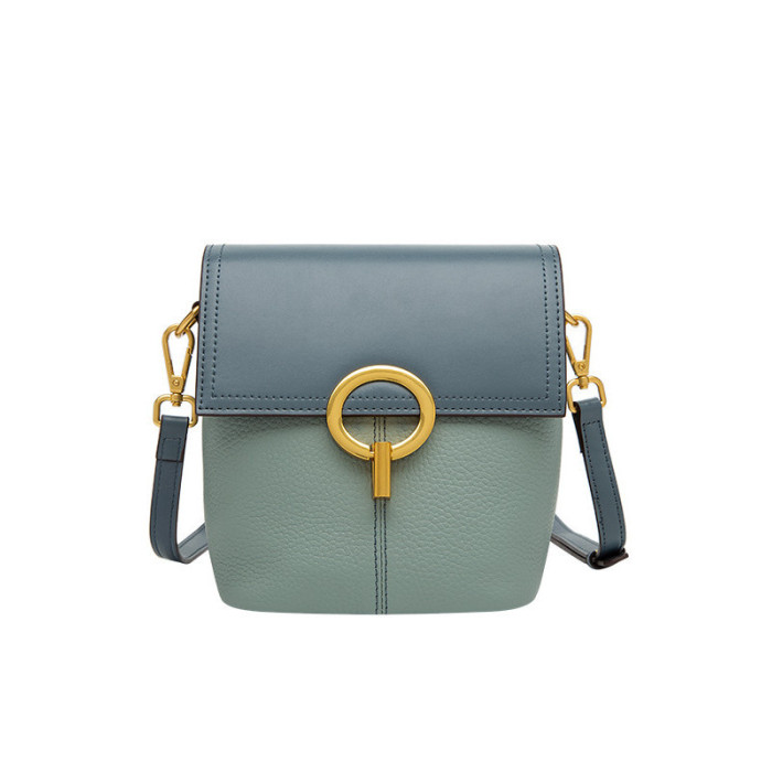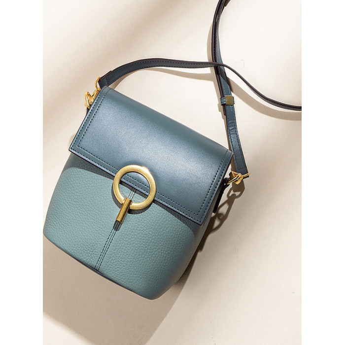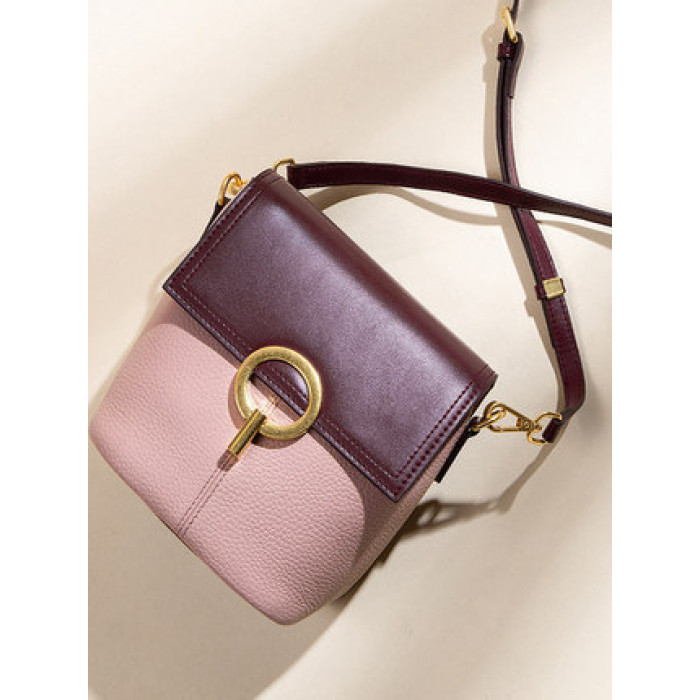 【麥樂包】新款時尚女包高級感撞色水桶包真皮手機包單肩斜背小包