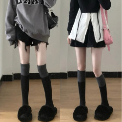 "灰色真的太高級啦!"襪子女小腿襪拼接純棉春秋ins潮過膝高筒襪