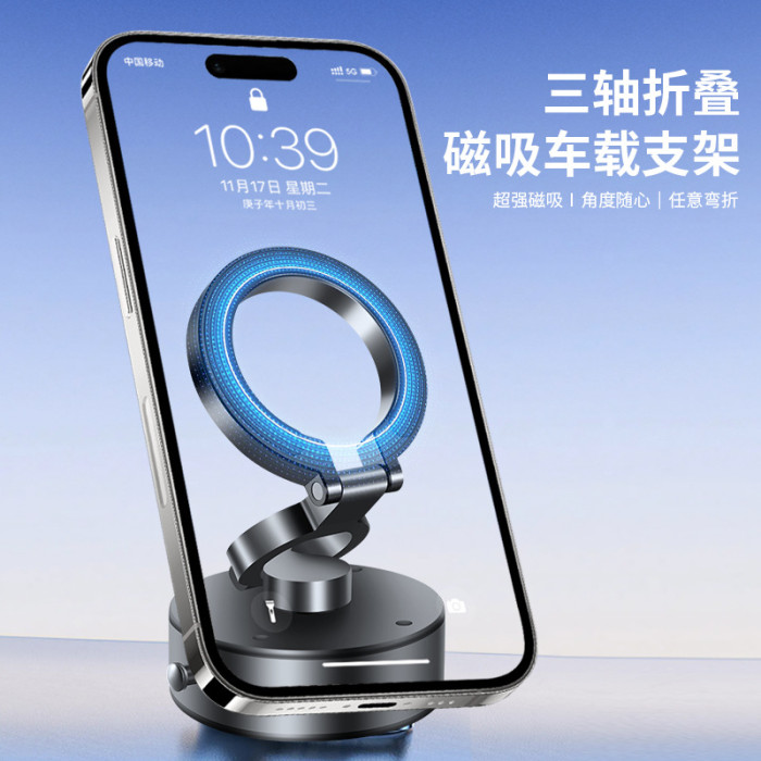 抖音磁吸折曡手機支架 電動真空吸附車用支架高級吸盤手機架