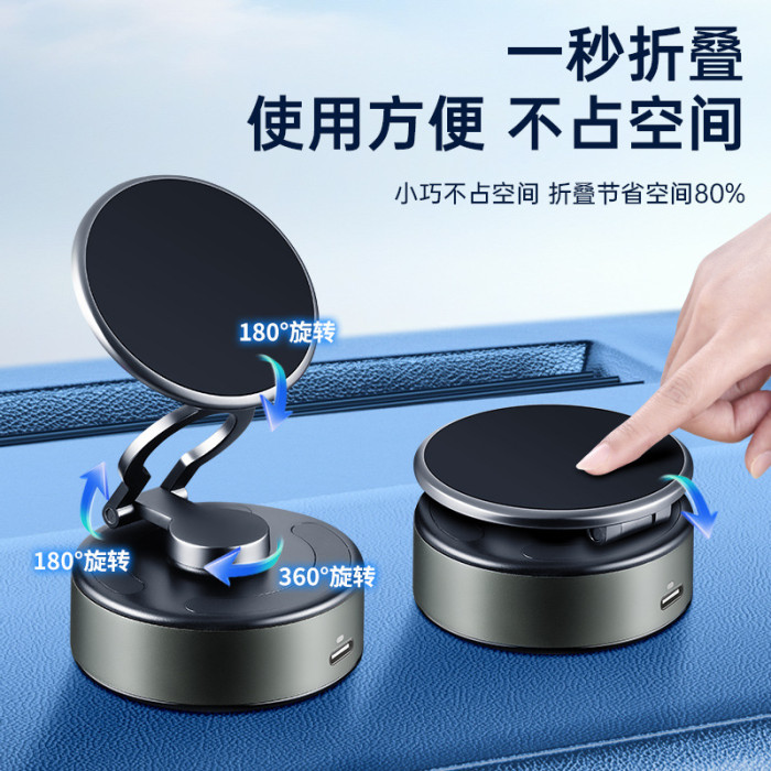 電動磁吸吸盤手機支架折曡旋轉磁吸支架汽車導航真空桌面車用支架