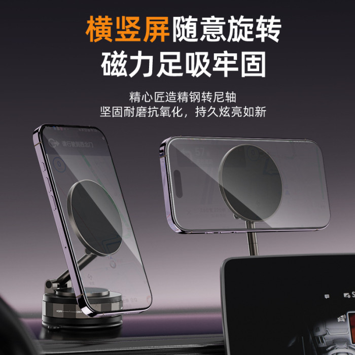 新款折曡真空吸附合金磁吸支架汽車通用金屬桌面可旋轉手機支架