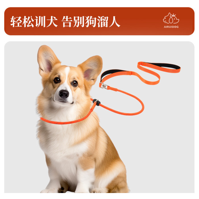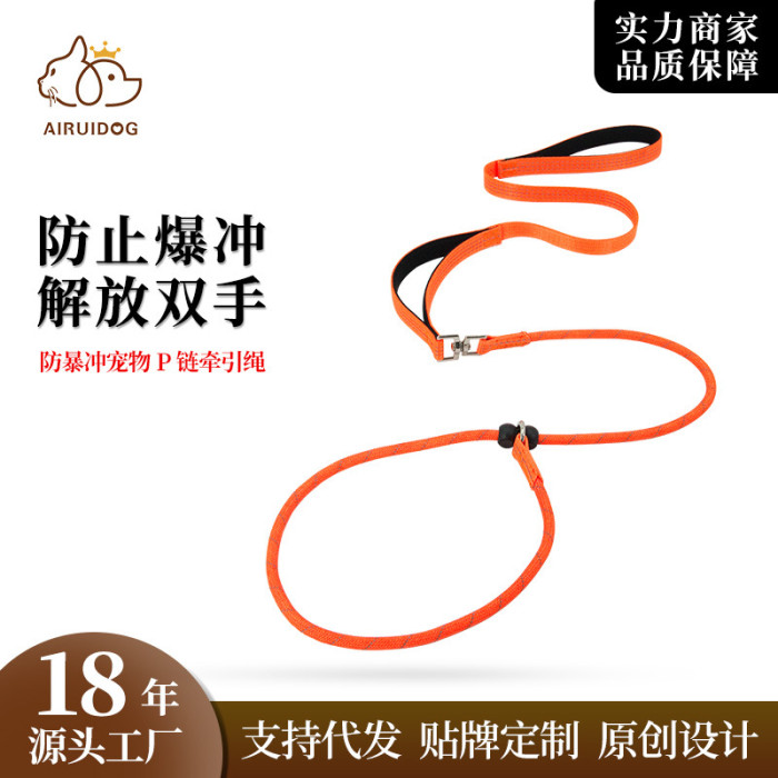 寵物牽引繩訓練專用反光P繩狗狗牽引繩可調節一體式遛狗繩子