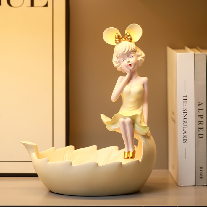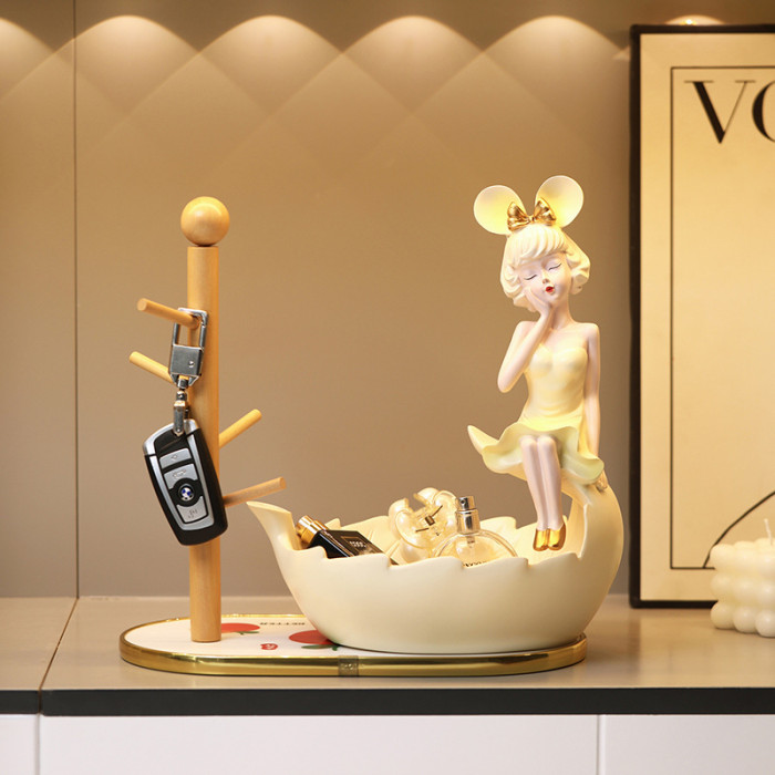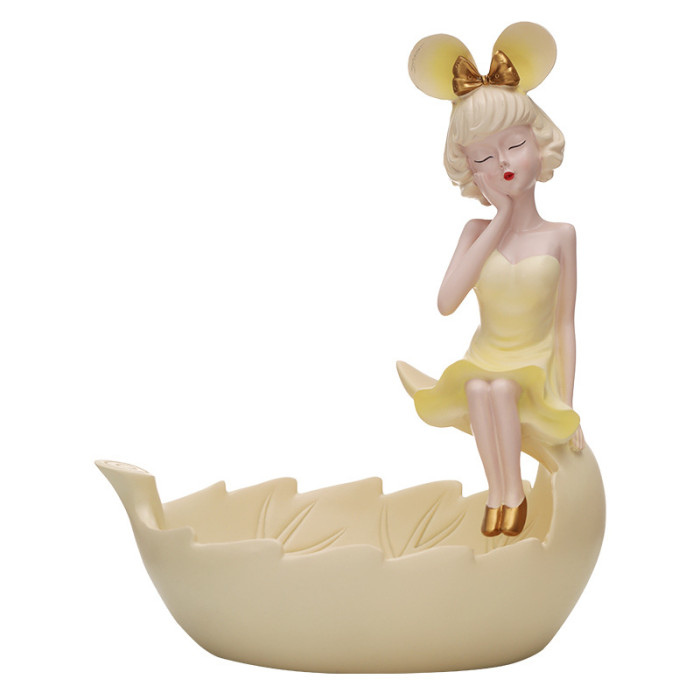 樹脂可愛兔女郎女孩收納果盤實用工藝品玄關擺件裝飾品禮品公仔