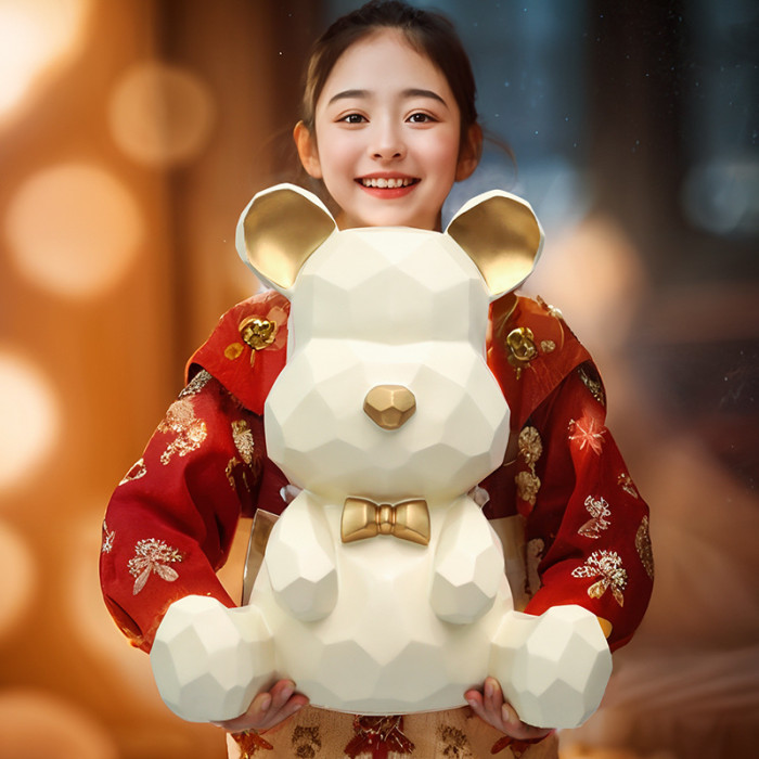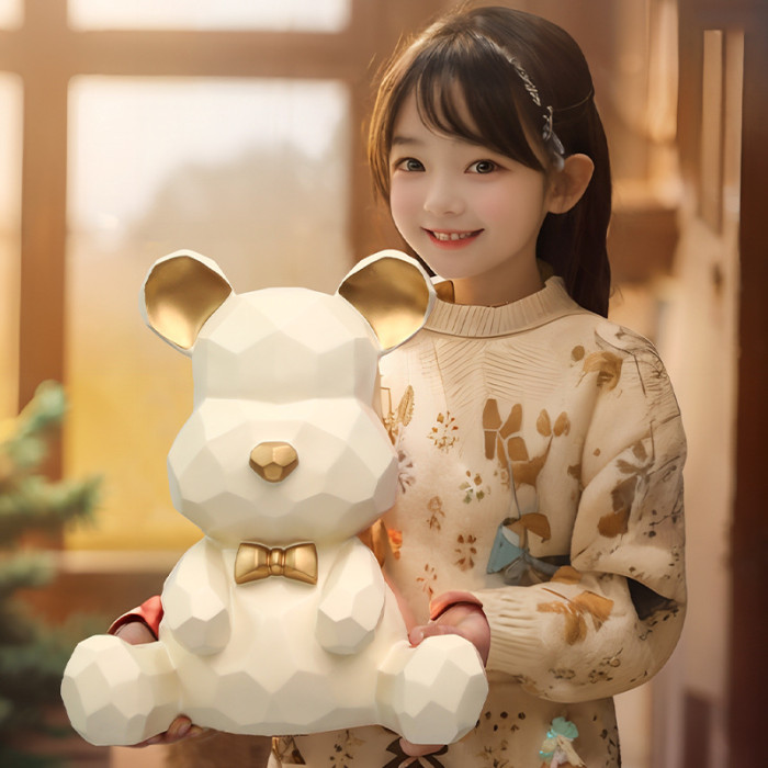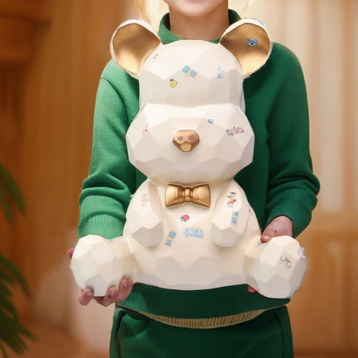 開學季兒童法式奶白色幾何暴力熊存錢罐 新款現代儲蓄 裝飾儲錢罐