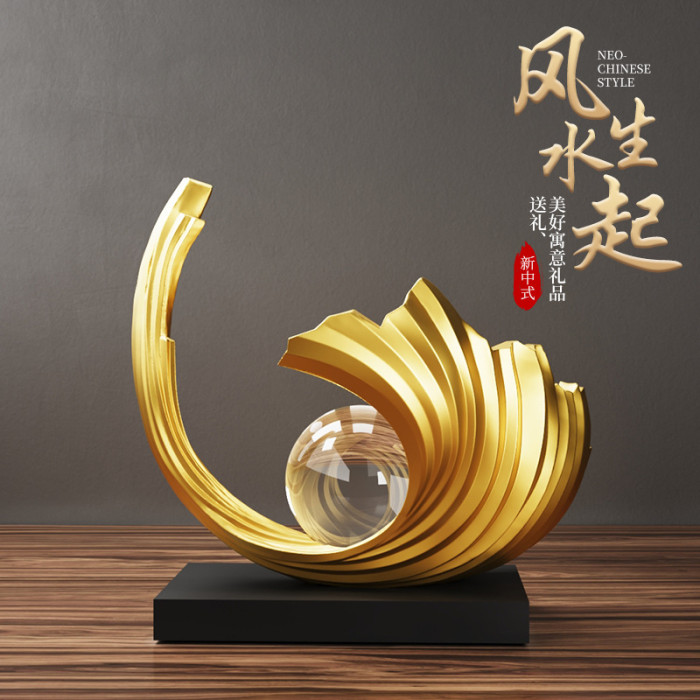 創意簡約樹脂財源滾滾輕奢桌面擺件辦公室客廳裝飾喬遷搬家禮物男