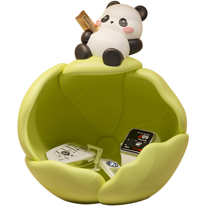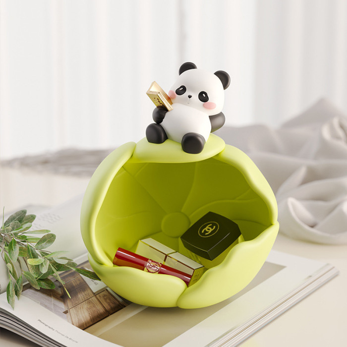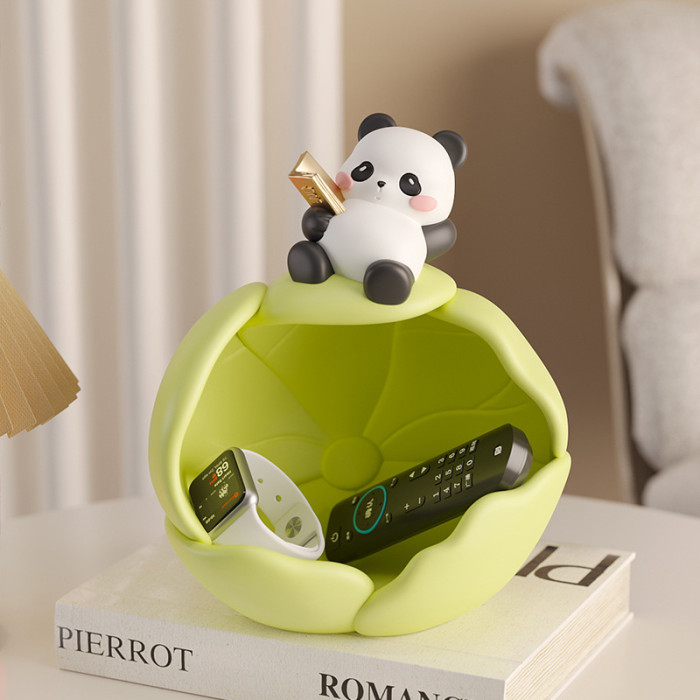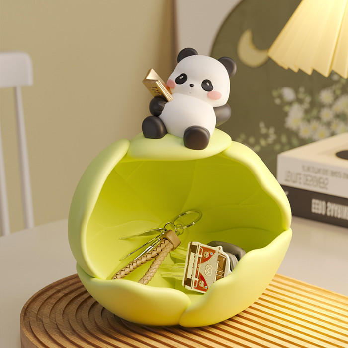 創意樹脂荷葉卷卷熊貓收納擺件個性家用客廳辦公室桌面高級置物盒