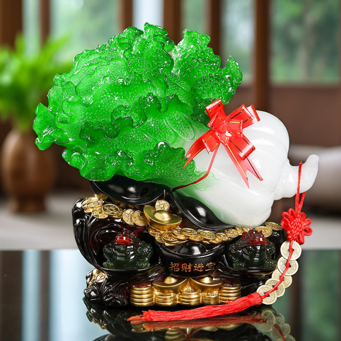 玉白菜擺件招財大號金蟾客廳玄關電視酒櫃店鋪工藝裝飾品開業禮品