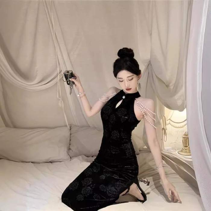 性感網紗背心裙打底荷葉邊包臀吊帶連衣裙