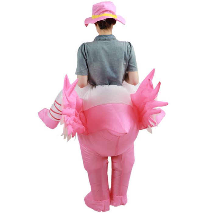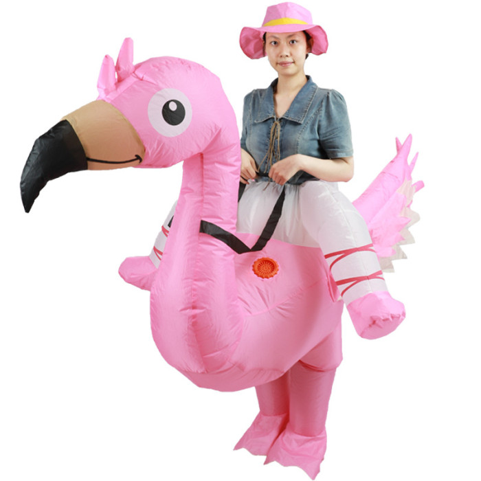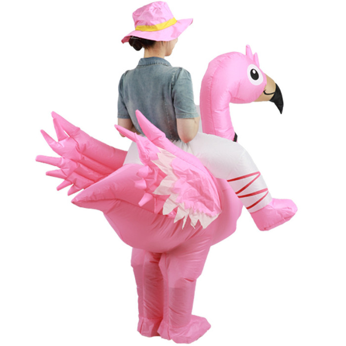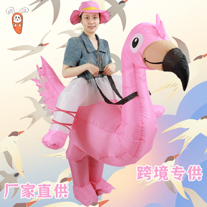 新品萬聖節節日搞怪人偶充氣服動物兒童坐騎粉色火烈鳥充氣服