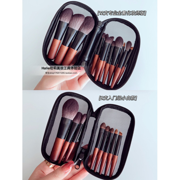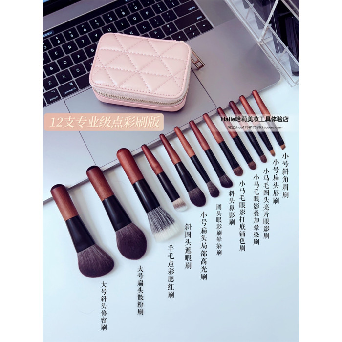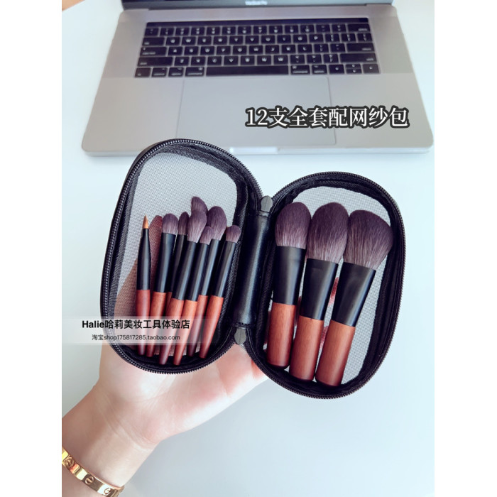 新品12支迷你可攜式短柄化妝刷套刷超軟毛眼影刷腮紅刷修容刷鼻影刷
