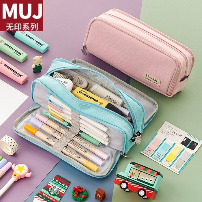 日本無印MUJ簡約大容量筆袋文具盒日系韓版初中生高中生少女多功