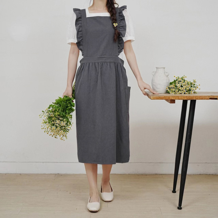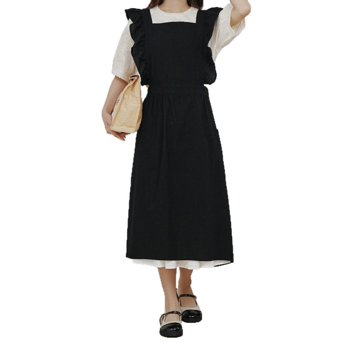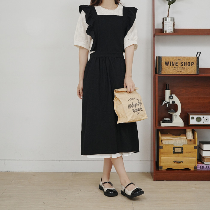 復古法式荷葉邊綁帶式宮廷風花邊連衣裙大碼加大一片式可調節